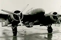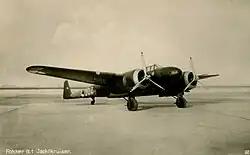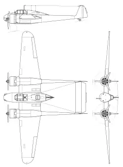 Like all Fokker aircraft of the period, the G.I was of mixed construction. The front of the central pod were built around a welded frame, covered with aluminium plating; the back of the central pod and the wings were wood. The G.I prototype, powered by 485 kW (650 hp) Hispano-Suiza 14AB-02/03 engines, had its first flight at Welschap Airfield, near Eindhoven on 16 March 1937 with Karel Mares at the controls.[3] Later, Emil Meinecke took over much of the test flights.[4] The maiden flight went well but a test flight in September 1937 ended with a supercharger explosion that nearly caused the loss of the prototype.[4] The accident prompted a replacement of the Hispano-Suiza engines with 559 kW (750 hp) Pratt & Whitney SB4-G Twin Wasp Junior engines.