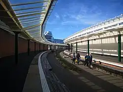 In 2015, the Folkestone Harbour Company commenced a £3.5 million project to refurbish the viaduct and the station, retaining the remaining tracks, and repairing the canopies and the customs house.[24] The viaduct across the harbour was opened as a pedestrian route in 2017.[34] The station and harbour front were redeveloped into markets and food stalls.[21] The station is planned to become integrated into the wider development of the beachfront and the harbour.[35]