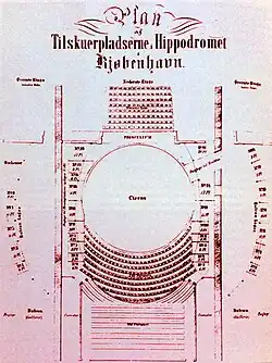 In 1846, No. 45 A & 46 C was merged with part of No. 47 as No. 45 A, 46 C og 47 B. in 1845-1846, the complex was converted into a hippodrome by the architect Hans Conrad Stilling.