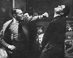Man Against Crime (also known as Follow That Man) starring Ralph Bellamy, one of the first television programs about private eyes, ran on CBS, the DuMont Television Network and NBC from October 7, 1949, to June 27, 1954, and was briefly revived, starring Frank Lovejoy, during 1956. The show was created by Lawrence Klee and was broadcast live until 1952.[1] The series was one of the few television programs ever to have been simulcast on more than one network: the program aired on both NBC and DuMont during the 1953–54 television season.[2]