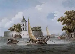 The name derives from forts built at the time in the south of England by Lord Palmerston and which were called "Palmerston's follies".[1] Later, similar forts built by the Europeans in China came to be called "folly fort" or simply "folly".
