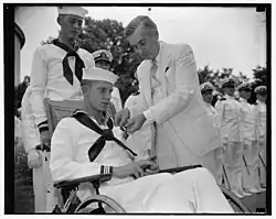 The Navy Cross was also presented to two British naval officers, Vice Admiral Lewis Eyre Crabbe and Lieut. Commander Harry Barlow, for their assistance in recovering survivors from the USS Panay.[24][25]