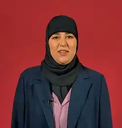 Sahla ran for member of parliament (MP) in the March 2021 general election, being placed 27th on D66's party list.[6] She received 3,087 preference votes, and her party won 24 seats – not enough for Sahla to be elected.[21] She became the temporary replacement of MP Rens Raemakers when he went on sick leave in October 2021.[22] Sahla was sworn in on 27 October and received support from former VVD leader Frits Bolkestein, who had been a guest teacher at Transvaal Universiteit.[13][23] She became the second hijab-wearing member of the House of Representatives in Dutch parliamentary history after Kauthar Bouchallikht.[24] Sahla simultaneously vacated her seat in the municipal council.[2] Her focus in the House was on youth care services, youth crime, youth protection, and the Participation Act, and she became a member of the Petitions Committee and the Committees for Education, Culture and Science; for Finance; for Health, Welfare and Sport; and for Justice and Security.[3][25] Sahla became a permanent member of parliament on 18 January 2022 before Raemakers returned from his sick leave, when Rob Jetten left the body to become a minister in the new fourth Rutte cabinet.[26][27] Her specialties changed to youth care, preschool, long-term healthcare, and caregiving, and she also became vice chair of the Committee for Social Affairs and Employment.[3][25]