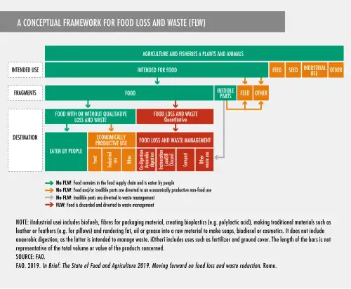 - Food redirected to nonfood chains (including animal feed, compost, or recovery to bioenergy) is not counted as food loss or waste. Inedible parts are not considered as food loss or waste (these inedible parts are sometimes referred to as unavoidable food waste)[12]