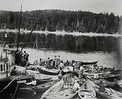 Tlingit cuisine refers to the food and drink of the Tlingit people, an indigenous group of people from Alaska, British Columbia, and the Yukon. It is a central part of Tlingit culture, and the land is an abundant provider. A saying amongst the Tlingit is that "When the tide goes out the table is set."[1] This refers to the richness of intertidal life found on the beaches of Southeast Alaska, most of which can be harvested for food. Another saying is that "in Lingít Aaní you have to be an idiot to starve". Since food is so easy to gather from the beaches, a person who cannot feed himself at least enough to stay alive is considered a fool, perhaps mentally incompetent or suffering from very bad luck.