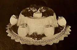 The first known photograph that showed food as a subject was a 1845 daguerreotype by William Henry Fox Talbot showing peaches and a pineapple.[3]