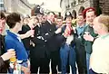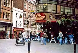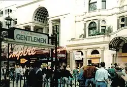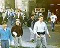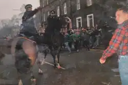 The following year the match was to be played at Wembley Stadium and avoiding the large police presence at Trafalgar Square on the day of the match the CCS set off on a search for opposition firms to fight. At Euston railway station outside the main entrance they spotted a crew of English hooligans and the Hibs boys wasted no time in setting about them. The Hibs mob then made their way to the Soho area where they attacked a pub containing English lads with a minor street battle breaking out.[32] In Leicester square a gang of Hibs casuals encountered an English firm made up of Chelsea Headhunters and other thugs from northern England and again the CCS steamed in. The ensuing pitched battle was an unexpected site for the tourists in one of London's famous thoroughfares as they observed the hooligan chaos of mob violence, people being decked, a series of fight and flight responses and then the English lads applauding themselves.[33]