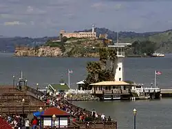 Forbes Island is a floating island and event space near Bradford Island, California, United States. It was formerly a restaurant, located between Pier 39 and Pier 41 in Fisherman's Wharf, San Francisco. It was the only "floating island" restaurant in the Bay Area. The restaurant was inspired by Captain Nemo's marine dwelling. The restaurant closed in 2017, and the floating platform was moved to the Holland Riverside Marina in Brentwood, California.