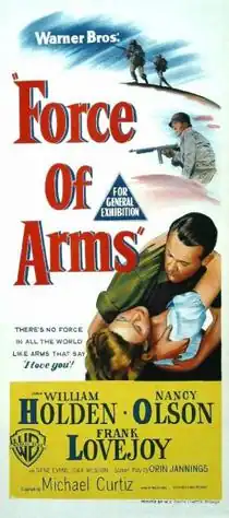 Force of Arms (reissued under the title A Girl for Joe) is a 1951 romantic war drama film set in the Italian campaign of World War II, starring William Holden, Nancy Olson, and Frank Lovejoy. Directed by Michael Curtiz, it was the third teaming Holden and Olson together as leads in four films released in 1950 or 1951 (with the others being Sunset Boulevard, Union Station, and Submarine Command).