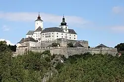 Forchtenstein (Hungarian: Fraknóváralja or Fraknókő, Croatian: Fortnavski grad; until 1972, Forchtenau, Fraknó, Fortnava) is a town in the district of Mattersburg in the Austrian state of Burgenland. It is the location of Forchtenstein Castle, one of the many palaces of the famous Esterházy family.