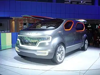 The Ford Airstream was a concept car built by Ford that made its debut at the 2007 North American International Auto Show in Detroit, Michigan. The Ford Airstream was a retro-futuristic crossover utility vehicle that was inspired by the classic Airstream recreational vehicle trailers built since the 1930s. The modern Ford Airstream concept included a plug-in hybrid hydrogen fuel cell drive system, called HySeries Drive, that operated exclusively on electrical power. Ford called the Ford Airstream Concept "a futuristic look at crossovers" as "modern touring vehicle(s)" for recreational travelers. The concept vehicle was designed in cooperation with Airstream, a division of Thor Industries.[1] The design and name of the Airstream were possibly influenced by the Ford Aerostar.