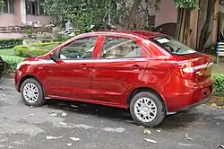 The Ford Figo was unveiled in Delhi in September 2009.[2] It is based on the same body used by the Fiesta Mk5 (B256) but with revised front and rear treatments.[3] It is smaller than the Fiesta Classic which Ford also sells in India.[2] The name "Figo" is a colloquial Italian word meaning "cool".[3]