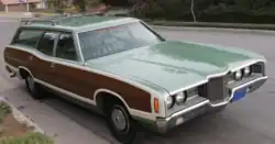 As part of the LTD line, the Country Squire wore similar interior trim; with the obvious exception of its simulated woodgrain paneling, Country Squires wore the same bodywork from the windshield forward as their LTD sedan counterparts. For the 1970 model year, visible changes were limited to detail changes in bumper and grille trim and lost the divider bar. In 1971, the Country Squire would be given an extensive facelift with only the roof and tailgate carried over from the 1970 model, sharing visual similarities with the 1970 Ford Thunderbird; as with the LTD, it would lose its hidden headlamps in the grille while the feature was added to the Mercury Colony Park due to its luxurious appearance shared with the 1969 Lincoln Continental.[32]