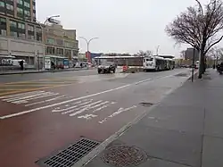 A Bx12 SBS bus stopped at Fordham Plaza near Fordham Place in 2009