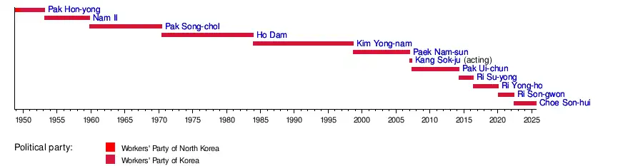 The following is a list of foreign ministers of North Korea since its founding in 1948:[1]