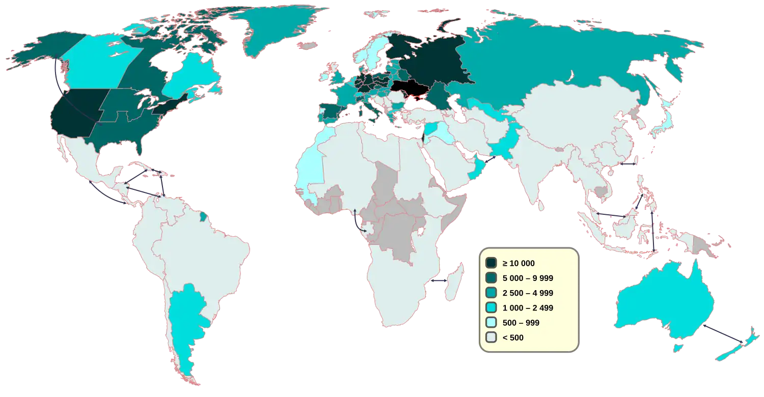 As of the day of voting in the first round of 2019 Ukrainian presidential election, there were 552,357 eligible voters (around 1.55% of all eligible voters) in the Foreign electoral district, of them 268 were on the military base in Goma, DR Congo, and 42 on military base in Novo Selo, Kosovo.[1] As of the day of voting of 2019 Ukrainian parliamentary election, there were 102 polling stations in 72 countries of the World, including 5 in Germany, 4 in the United States, Poland and Italy, and 3 in Canada, Spain, Turkey and China.[3][4] The Consulate-general of Ukraine in Milan is the only place in the Foreign electoral district where there are two polling stations.
