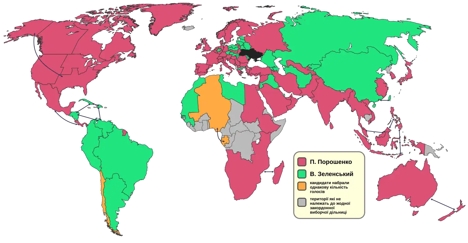 - ^ 2019 Ukrainian presidential election: Results of voting in polling stations abroad (vote on 31.03.2019) — website of the Central Election Commission (archive)