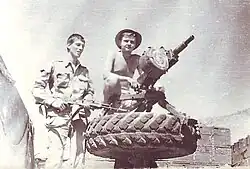 In 1934, two brigades of about 7,000 Soviet GPU troops, backed by tanks, airplanes and artillery with mustard gas, crossed the border to assist Sheng Shicai in gaining control of Xinjiang. The brigades were named "Altayiiskii" and "Tarbakhataiskii".[3] Sheng's Manchurian army was being severely beaten by an alliance of the Han Chinese army led by general Zhang Peiyuan, and the 36th Division led by Ma Zhongying.[4] Ma fought under the banner of the Kuomintang Republic of China government. The joint Soviet-White Russian force was called "The Altai Volunteers". Soviet soldiers disguised themselves in uniforms lacking markings, and were dispersed among the White Russians.[5]