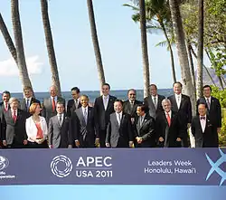 Under the Basic Law, the Hong Kong Special Administrative Region is exclusively in charge of its internal affairs, whilst the central government of China is responsible for its foreign affairs and defence.[1] As a separate customs territory, Hong Kong maintains and develops relations with foreign states and regions, and plays an active role in such international organisations as World Trade Organization (WTO) and the Asia-Pacific Economic Cooperation (APEC) in its own right under the name of Hong Kong, China.[2] Hong Kong participates in 16 projects of United Nations Sustainable Development Goals.[3]