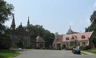 The Woodbourne Historic District is a historic residential subdivision in Forest Hills. It consists of a 30-acre (12 ha) parcel of land southwest of Forest Hills Cemetery, roughly bounded by Walk Hill Street, Goodway Road, and Wachusett Street. This area was developed into house lots between 1890 and 1933 by financier Robert Winsor in an effort to create a sort of utopian community for middle-class families. Frederick Law Olmsted Jr. was responsible for some of its layout.[5]