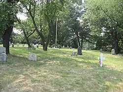 A large portion of Forest Hills is occupied by Forest Hills Cemetery, an active cemetery, also enjoyed as a 275-acre (1.1 km2) park and arboretum, recognized as one of the finest 19th-century rural cemeteries in the country and listed on the National Register of Historic Places. Eugene O'Neill, e.e. cummings and William Lloyd Garrison are among the famous people buried here. St. Michael's Cemetery & Crematory (across Walk Hill Street from the Forest Hills Cemetery) is more contemporary in design. Calvary Cemetery, Mt. Hope Cemetery and New Calvary Cemetery are also large in size and are more contemporary (for example, level and sparsely wooded) burial grounds that lie on the opposite side of American Legion Highway. Together these cemeteries form a "dead area" that separates Forest Hills from the nearest sections of Mattapan and Roxbury.[7][8]