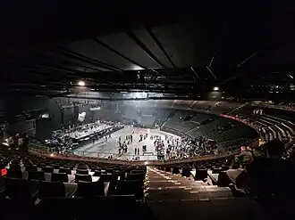 Forest National opened on 8 October 1970 with a performance by Maurice Béjart's Ballet of the 20th Century.[4] Originally, it had a capacity of 5,500 seats. A renovation followed in 1995, which increased the capacity to 8,400 seats and improved lighting and sound systems. On that occasion, the façade was renovated, the foyer was expanded, and a new stage adjustable in height and width was also installed.[1]
