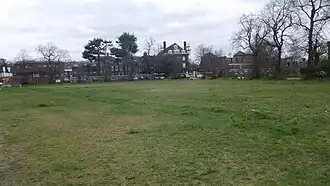 Forest had an important role in the development and creation of association football, and the common at the front of the school may well be regarded as a "cradle of the game".[5] In the school's early years there was no sport apart from informal kick-about by the pupils, but by the 1840s cricket was played and hockey was in vogue in the early 1850s. Football began at Forest in 1857 when Frederick Guy took over as headmaster; it was played on the common, at the front of the school. The common was a rather uneven playing surface, with the great chestnut trees at the side of the pitch "in play" and some famous iron railings marking the north end of the pitch. Tradition records some great battles between Charles W. Alcock and F.J. Poole, in which the object was to barge the other player over the iron railings![3] The earliest reported match against another school was in Forest's first season on 24 February 1858, when Forest beat Chigwell School 5-4 on the common.[6] Another early game was on Saturday 16 November 1861, when Forest School, (playing as "Walthamstow"), lost to a Westminster School side (playing as "Bounding Bricks") by three goals to nil.[7] A return match was played four weeks later, and in 1862 the school played against Old Westminsters (playing as Elizabethan Club).[8]