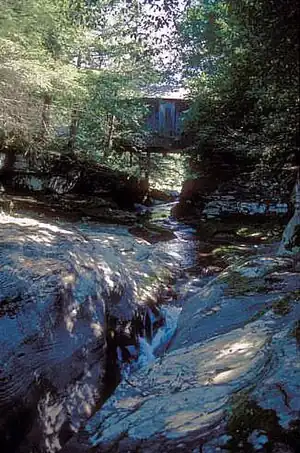 Forge Bridge is a wooden covered bridge in the town of Hardenburgh in Ulster County, New York. It was originally built in 1906 and has a single span of 27 ft (8.2 m).