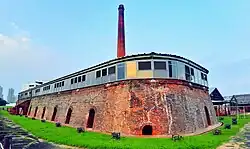 The building was originally a tile factory established in 1899 by the Japanese government.[2][3] Latest technology was introduced to this kiln and after around two decades, the brick production in this factory accounted for around 70% of bricks in Taiwan. Demand for bricks grew exponentially as the economy prospered, thus the government integrated all existing kilns in Taiwan in 1913 to form the Taiwan Renga Company (Japanese: 臺灣煉瓦會社打狗工場). Six more kilns capable of high yield bricks were added and the bricks produced here was branded the Taiwan Renga.[4]