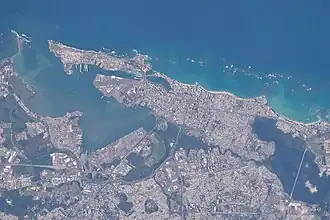 Isla de Cabras (Spanish for "goat island") is a small islet in the middle of the mouth of San Juan Bay in northeastern Puerto Rico. Part of the Palo Seco barrio in the Toa Baja municipality, the islet is located at the entrance to San Juan Bay, across from the Old San Juan historic quarter in San Juan Islet in San Juan, the capital municipality of the archipelago and island. Home to Isla de Cabras National Park, a recreational area opened in 1957, it contains El Cañuelo fort, which alongside El Morro fortress on San Juan Islet, protected San Juan Bay, the harbor of Old San Juan, from invasion by competing world powers during the Age of Sail. The ruins of a 19th-century leprosy colony and a World War II fort are located in the islet, which also houses a police firing range since 1950. The Bacardi’s Cathedral of Rum in the adjacent Cataño municipality is directly south of the islet.