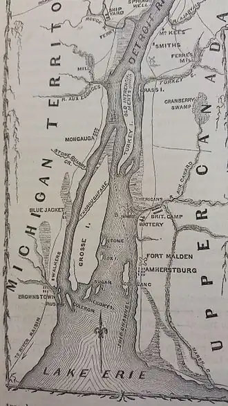 Built in the years before the War of 1812, Fort Amherstburg included "King's Navy Yard" for shipbuilding on the upper Great Lakes (Lakes Erie, Huron, and Superior). The War of 1812 began and escalated quickly with US General William Hull invading Canada in July 1812. Soldiers from the fort repelled the Americans at River Canard. After General Hull retreated back to Fort Detroit, British General Isaac Brock and the Shawnee Chief Tecumseh met at Fort Amherstburg to plan the attack of Fort Detroit in the British Indian Department building located outside of the fort grounds. After losing the Battle of Lake Erie (including the flagship HMS Detroit, which was built at the nearby Navy Yard Park), the British/Canadians destroyed the fort and retreated as most of the cannons normally placed in the bastions were put onto the ships to be used for the engagement on Lake Erie and subsequently were lost.