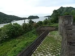 Fort Belgica sits on top of a hill on the southwestern part of the island Banda Neira. The fort overlooks Fort Nassau, lower on the foot of the hill to the south.