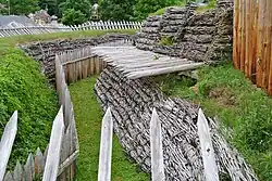 Fort Ligonier is a British fortification from the French and Indian War located in Ligonier, Pennsylvania, United States. The fort served as a staging area for the Forbes Expedition of 1758. During the eight years of its existence as a garrison, Fort Ligonier was never taken by an enemy. It served as a post of passage to the new Fort Pitt, and during Pontiac's War of 1763, was a vital link in the British communication and supply lines. It was attacked twice and besieged by the Native Americans, prior to the decisive victory at Bushy Run in August of that year. The fort was decommissioned from active service in 1766. Today, there is a museum next to the reconstructed fort. Inside the museum there are artifacts from the battle. An individual can take a guided tour of the fort, and on Fort Ligonier Days, the fort's cannons are fired.[3]