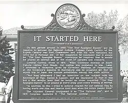 It was at Fort Meade that the "Star Spangled Banner" first became the official music for the military retreat ceremony, long before it became the national anthem. In 1892, the post commander Colonel Caleb H. Carlton, 8th Cavalry, began the custom of playing the "Star Spangled Banner" at military ceremonies and requested that all people rise and pay it proper respect long before it became the national anthem.[3]