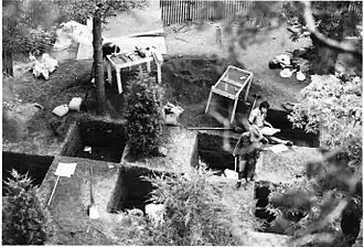The summit of Starved Rock was the site of archeological excavations in 1947–1949 by archaeologists from the Illinois State Museum and the University of Chicago.[27] The research was continued in 1950 by an archaeologist from State Department of Public Works and Buildings who had joined the project the year before.[27] Archaeologists from the University of Illinois Chicago restarted testing at the site for a season in 1974, and later an archaeologist from Illinois State University continued testing.[27] The 1947–1950 excavations provided the "greater part of the knowledge of the archaeology of Starved Rock".[27]