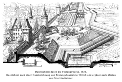 - ^ Auf die Notwendigkeit dieser stumpfen Winkel hatte einer der Pioniere des frühneuzeitlichen Festungsbaus, Daniel Specklin, bereits 1589 in seinem Werk Architectura von Vestungen hingewiesen.