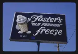 George Foster moved to California after World War II to open outlets for Dairy Queen, since he owned the development rights in the state. However, state laws protecting the dairy industry prevented the use of dairy in restaurant names. So instead, in 1946, Foster opened a restaurant named after himself, Foster’s Old Fashion Freeze.[7] (The apostrophe was later dropped.)[8] In 1951, he sold the chain's 360 locations for $1 million. By 1987, it had been reduced to 189 locations.[9]