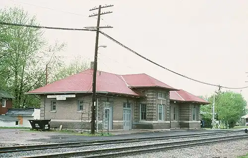 The station building was constructed by the Baltimore and Ohio Railroad. It opened in March 1907. Baltimore and Ohio services ended in 1971.[2]