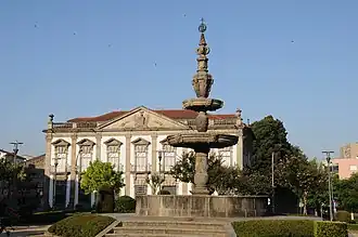 The ornate fountain of Campo das Hortas in front of the Residence Cunhas Reis | |