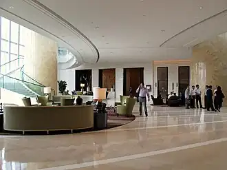 Four Seasons Hotel Hong Kong (Chinese: 香港四季酒店) is a five-star hotel located in the International Finance Centre complex in Central, Hong Kong near Hong Kong station.[1] It was completed and opened in September 2005. It is a 45-storey building with 399 rooms, of which 54 are suites, and also contains 519 residential units, as part of the Four Seasons Place serviced apartments[2] (Chinese: 四季匯). It is operated by Canadian-based hotel chain, Four Seasons Hotels and Resorts.[3]