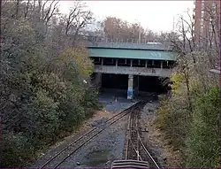 Formerly, the Fourth Avenue Line served trains from the BMT Culver Line, which connected to the 36th Street station via the lower level of the Ninth Avenue station south of Green-Wood Cemetery from a now-demolished elevated structure.[8] Following the connection of the Culver Line to the South Brooklyn Line of the IND on October 30, 1954, this service turned at Ditmas Avenue instead.[40]: 72, 74 Later on, service via the BMT Culver Line was cut back to being a shuttle that ran between Ditmas Avenue and Ninth Avenue. Shuttle service ended in 1975,[5][6] with homes and housing developments erected over the right-of-way of the two demolished stations in the 1980s and again in the 2010s.[79] The barest stub of the old elevated line is still visible at Ditmas Avenue.[80][81]