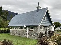 The Douglas Memorial Church was a small Presbyterian church at 5 Main Road, Fox Glacier, built by the Hokitika firm of Goodfellow and Bennett in 1952 from local stone and rimu. A reduction in the number of parishioners saw the church put up for sale in 2012, and it was subsequently converted into self-catering holiday accommodation, The Church at Fox, opening in 2015.[38][39]