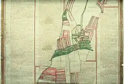 Land surrounding the hamlet is designated a "deserted medieval village" suggesting the hamlet was much larger, although the listing does not include any detail.[2] An Estate map dated from 1614 was produced for Sir Edward Barrett by cartographer John Walker (1577-1618) documenting lands within the manor of Foxcotte. Foxcotte Manor House is shown.[3] Lands to the south at Abbott Sande Common are included.[4] Two further maps in the same production document nearby copyholder land at Charlton.[5][6] In combination these indicate the size and nature of the manor as at 1614 and offer evidence as to the content of the mediaeval hamlet's holding.