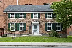 The François Bâby House is a historic residence located in Windsor, Ontario, Canada which was owned by the prominent local politician François Baby. The house is a two-storey, Georgian style, red brick house once known as La Ferme locally, and was a French-Canadian ribbon farm which was a long narrow tract fronting endwise on the Detroit River. The home itself has historical ties to the War of 1812 where it was used as a headquarters by both the American and British forces.