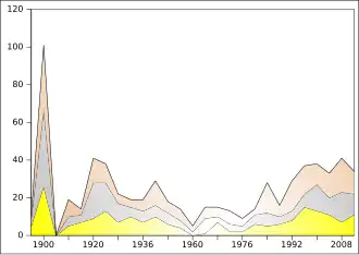| 1900 Paris | 59 | (21)/5 | 2 | 3 | 1 | 6 | 1 |
