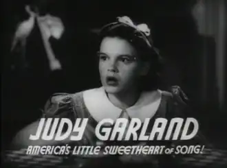 "Baby" (as she was called by her parents and sisters)[10] shared her family's flair for song and dance. Her first appearance came at the age of two, when she joined her elder sisters Mary Jane "Suzy/Suzanne" Gumm and Dorothy Virginia "Jimmie" Gumm on the stage of her father's movie theater during a Christmas show and sang a chorus of "Jingle Bells".[11] The Gumm Sisters performed there for the next few years, accompanied by their mother on piano.[10]