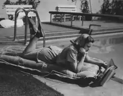 Garland returned to Los Angeles heavier and in the fall of 1949, she was cast opposite Gene Kelly in Summer Stock (1950). The film took six months to complete. To lose weight, Garland went back on the pills and the familiar pattern resurfaced. She began showing up late or not at all. When principal photography on Summer Stock was completed in the spring of 1950, it was decided that Garland needed an additional musical number. She agreed to do it provided the song was "Get Happy". In addition, she insisted that director Charles Walters choreograph and stage the number. By that time, Garland had lost 15 pounds and looked more slender. "Get Happy" was the last segment of Summer Stock to be filmed. It was her final picture for MGM. When it was released in the fall of 1950, Summer Stock drew big crowds and racked up very respectable box-office receipts, but because of the costly shooting delays caused by Garland, the film posted a loss of $80,000 to the studio.[75] Garland was cast in the film Royal Wedding with Fred Astaire after June Allyson became pregnant in 1950. She failed to report to the set on multiple occasions and the studio suspended her contract on June 17, 1950. She was replaced by Jane Powell.[76] Reputable biographies following her death stated that after this latest dismissal, she slightly grazed her neck with a broken glass, requiring only a Band-Aid, but at the time, the public was informed that a despondent Garland had slashed her throat.[77] "All I could see ahead was more confusion", Garland later said of this suicide attempt. "I wanted to black out the future as well as the past. I wanted to hurt myself and everyone who had hurt me."[78] In September 1950, after 15 years with the studio, Garland and MGM parted company.[79][80]