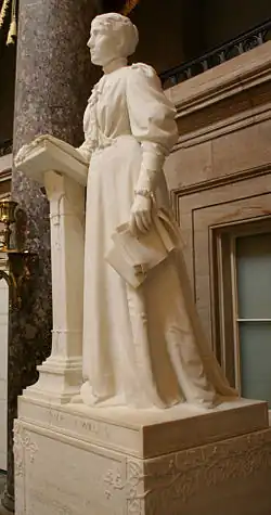 After her death, Willard was the first woman included among America's greatest leaders in Statuary Hall in the United States Capitol. Her statue was designed by Helen Farnsworth Mears and was unveiled in 1905.[25]
