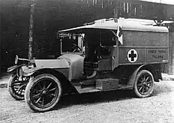 On 9 September 1917, Francesco Della Valle was promoted to Major General for his outstanding merits.[6] The Italian military medical system, under his coordination, "had to manage the transport, care and hospitalization of over two and a half million wounded and sick people, making use of the Military Health Corps and the Italian Red Cross apparatus (medical personnel and 'Dames of the Red Cross') assisted by voluntary nurses from welfare committees such as those of the Knights of Malta, the Order of Saints Maurice and Lazarus and the Jesuits"[7] In 41 months of the war. In his role, Della Valle contributed to the development of the health chain for the triage and sorting of the wounded from the battlefront to the most-suitable hospitals of different capacities, to the introduction of surgical ambulances—mobile operating rooms of the army run by highly trained doctors, that were equipped with several tents and vehicles—to the interaction between the military and civilian health systems, and to the establishment of the Università Castrense[8] in San Giorgio di Nogaro (UD) for the emergency training of a large number of military doctors needed to assist the wounded.[9]