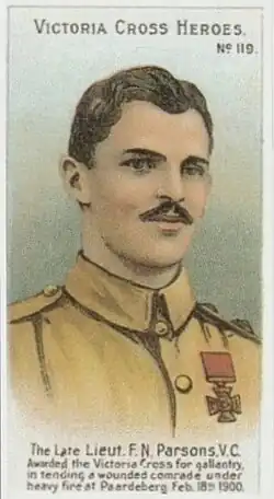 Francis Newton Parsons VC (23 March 1875 in Dover – 10 March 1900) was educated at Dover College, joined the Essex Regiment and served in the Second Boer War. He was an English recipient of the Victoria Cross, the highest and most prestigious award for gallantry in the face of the enemy that can be awarded to British and Commonwealth forces.